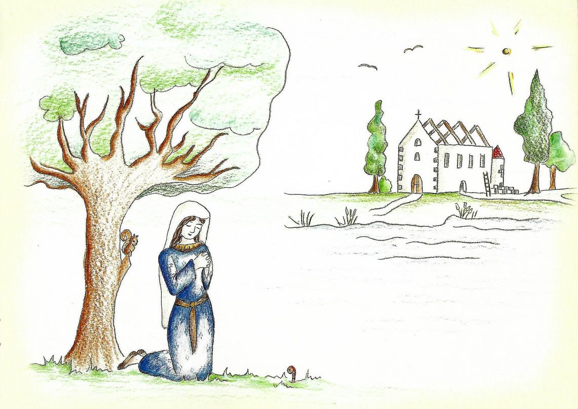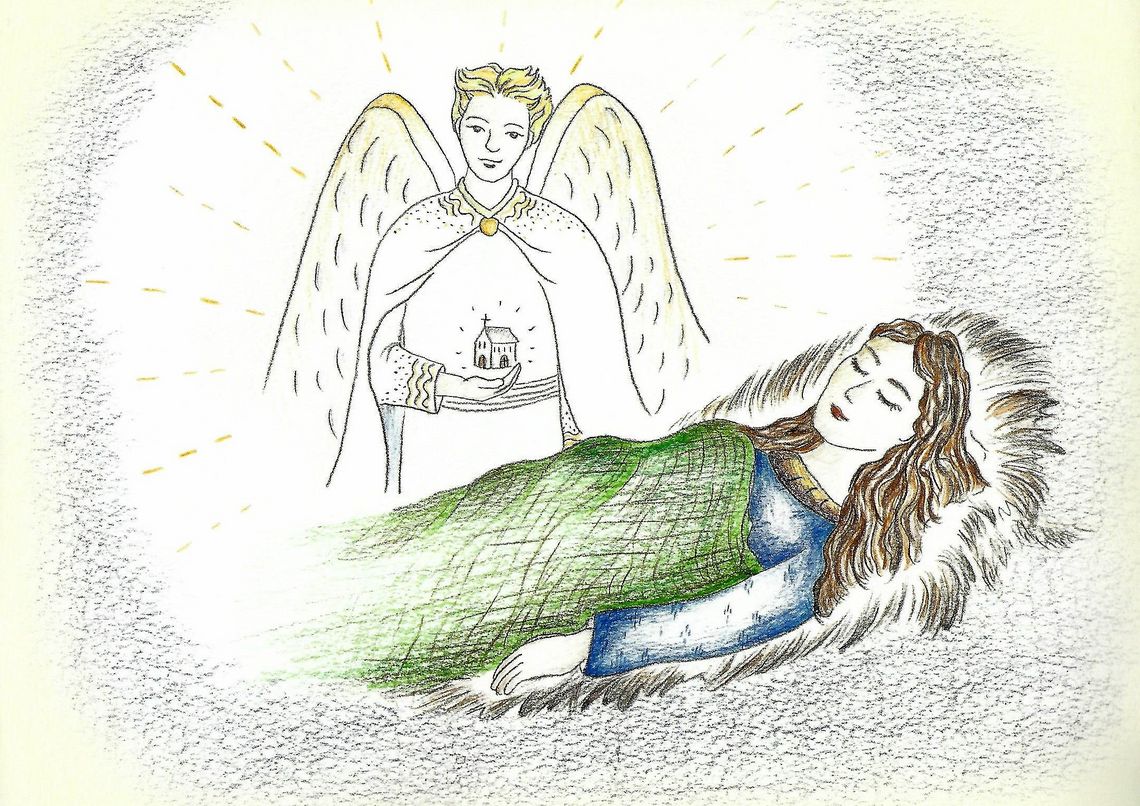 Es ging auf langen Wegen durch Felder und Wälder. Nach vielen Übernachtungen suchten sie auch für diesen Abend einen guten Platz zum Schlafen. An einem Ort an der Lippe begannen sie. Ihr Zelt für die Nacht zu errichten. In dieser Nacht erschien Ida in ihren tiefen Träumen ein Engel. „Ida, baue an diesem Ort eine Kirche und erzähle all den Menschen von Gott.“ sagte der Engel.