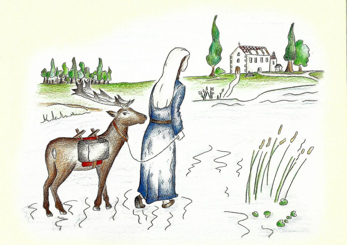 Der Hirsch blieb bei Ida und half mit beim Bau der Kirche. Er trug auf seinem Rücken schwere Steine durch die Lippe bis zum anderen Ufer, an dem die Kirche erbaut wurde. Nach dem langen Bau errichteten viele Menschen um die Kirche herum ein Dorf: Das heutige Herzfeld an der Lippe.