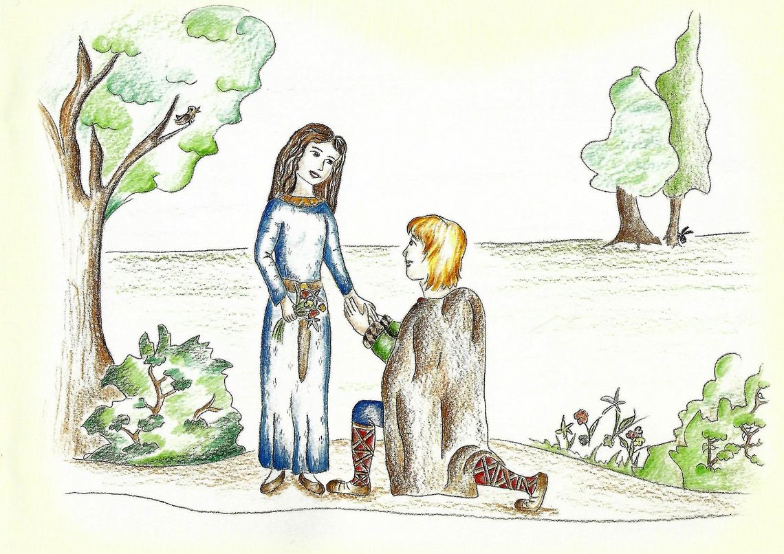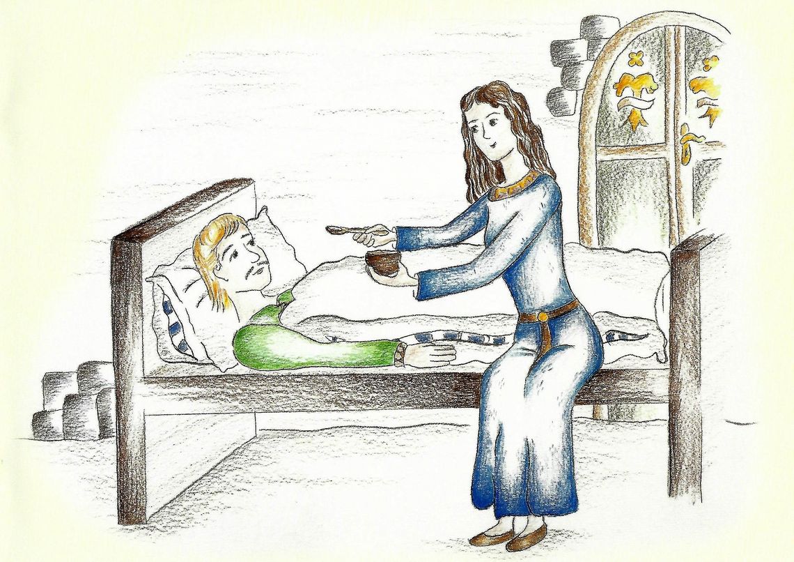 Zusammen mit ihrer Mutter und den Bediensteten pflegte Ida Egbert, bis das Fieber gesunken und die schlimmen Wunden abgeheilt waren. Täglich versorgte sie ihn mit Medizin, wusch ihn und fütterte ihn mit kräftigen Suppen. Langsam nahm Egbert seine nähere Umgebung wahr und freute sich immer, wenn Ida zu ihm kam. Sie erzählten einander aus ihrem Leben und so lernten sie sich immer besser kennen. Einige Wochen vergingen und Egbert wurde immer kräftiger. Eines Tages kam Wala wieder als eiliger Bote des Königs angeritten. Er berichtete, dass der König auf dem Weg zum Hof sei, um nach Egbert zu sehen. Plötzlich wurde Ida klar, dass Egbert gesund genug war, um wieder mit dem König in den Krieg zu ziehen. Dies bedrückte sie sehr. Auch Egbert wurde dies bewusst. Beide waren traurig und sehr nachdenklich.