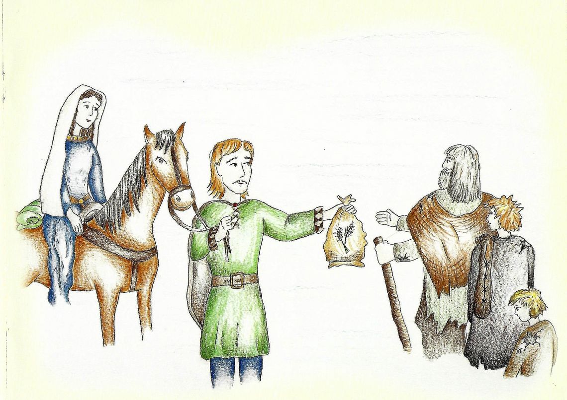 Nach langem Warten, an einem herrlichen Sommertag, sah Ida einen Reiter auf sich zukommen. Als er näherkam, erkannte sie ihren Freund Wala. Aufgeregt lief sie auf ihn zu. „Wala!“ rief sie so laut sie konnte. Erst als er ganz nah bei ihr anlangte, bemerkte sie seinen bedrückten Gesichtsausdruck. „Sag mir, Wala, welche Nachrichten bringst du uns?“ Wala berichtete, dass König Karl auf dem Weg zu ihnen sei, um einen Verletzten zu bringen. „Er heißt Egbert und ist einer der besten Heerführer König Karls“, sagte Wala.